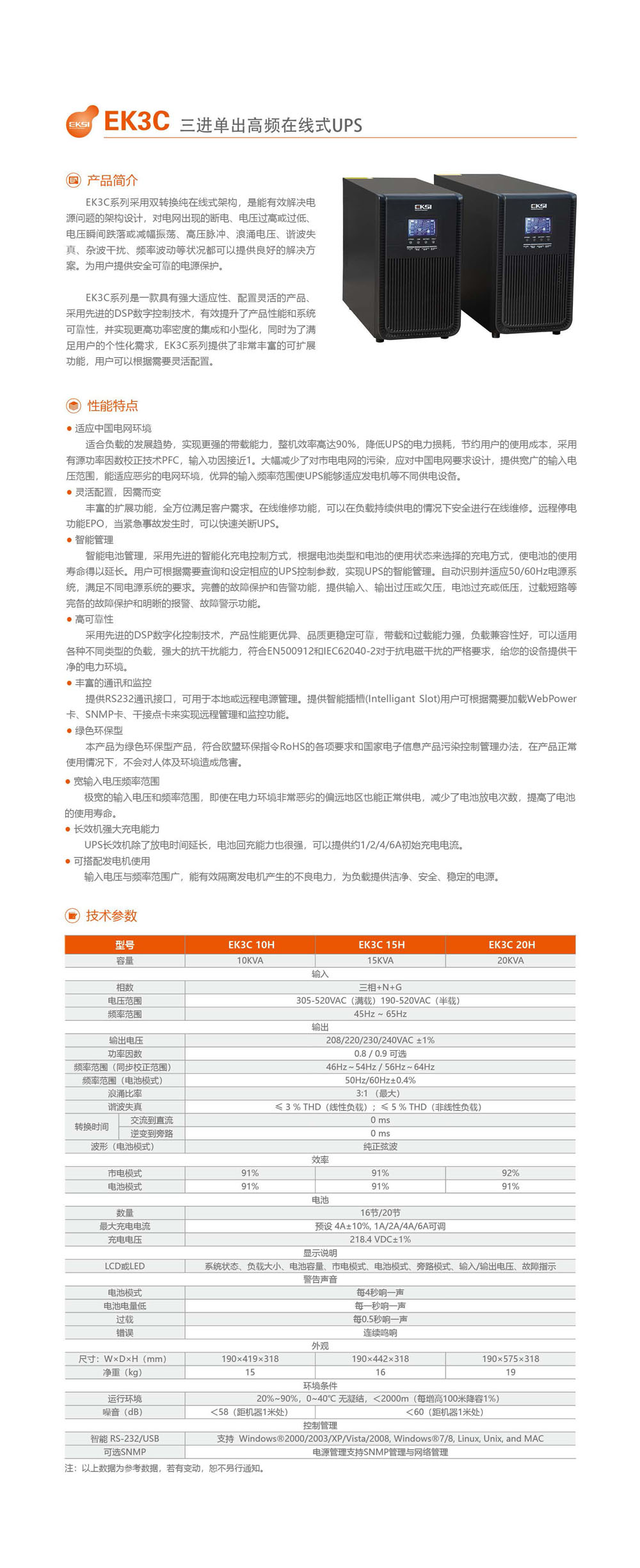 EK3C系列采用雙轉(zhuǎn)換純?cè)诰式架構(gòu),是能有效解決電源問(wèn)題的架構(gòu)設(shè)計(jì),對(duì)電網(wǎng)出現(xiàn)的斷電、電壓過(guò)高或過(guò)低,浪涌電壓、諧波失真、雜波干擾等狀況都可以提供良好的解決方案。